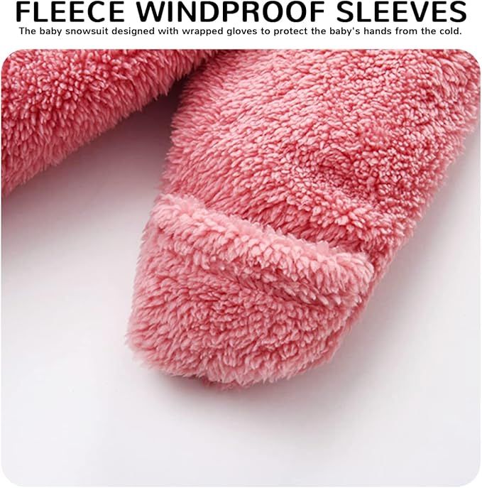 - ❤♥Material: This baby snow suit made of high quality polyester fiber, double lining, fine polyester fiber cares for baby's delicate skin. The newborn winter outfit hoodie whole body jumpsuit design, keeps the baby's head and ears inside and warm when outing. The toddler boys & girls snow suit accompanies the baby through the cold winter.