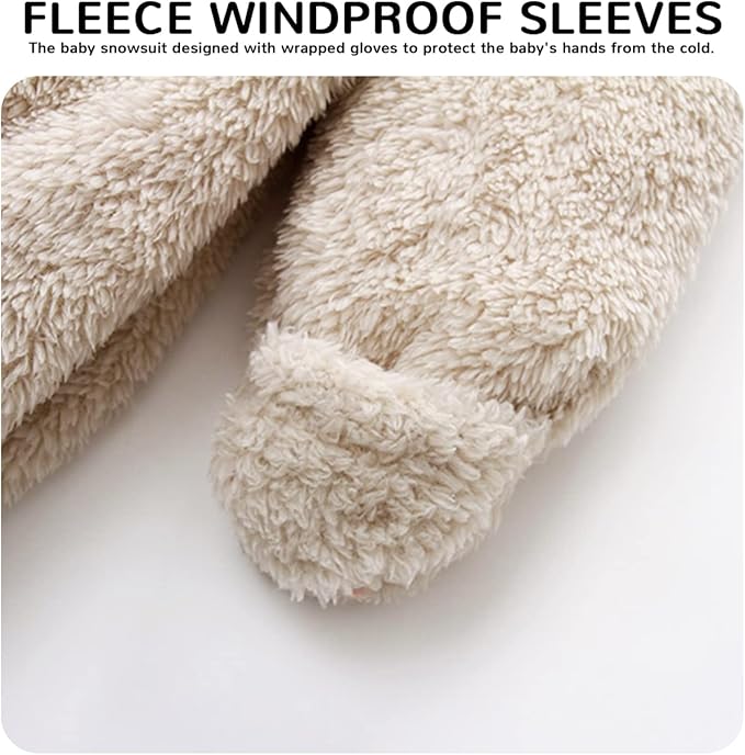 • ❤♥Design: Baby snow jacket warm one-piece jacket, full-cover zipper design to protect the baby from harm, one pull to the end, it is convenient for the baby to change diapers, the flip-up gloves can keep the baby warm and energetic at the same time, the bear ear one-piece cap makes the baby Avoid cold winds outdoors while increasing your baby's charm