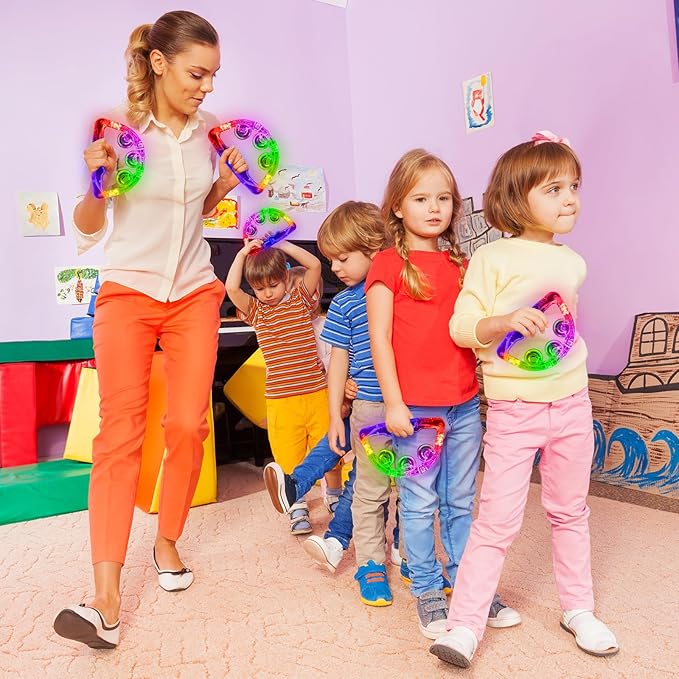 Aywewii LED Tambourine, Light Up Toys Handheld Musical Flashing Tamborine Sensory Toys Autism Toys Party Supplies for Birthday Anniversaries Gifts for Kids Adults Teens (6 Pack)