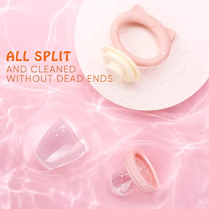 - 【TRY SOLID FOOD FLAVORS】HAOBAOBEI silicone feeder set including 2 pack baby silicone feeder with 4 silicone pouches, which is designed to fit for each age. Just put fresh fruits, food or frozen breastmilk, your baby will enjoy the taste of solid foods by chew the baby feeder.