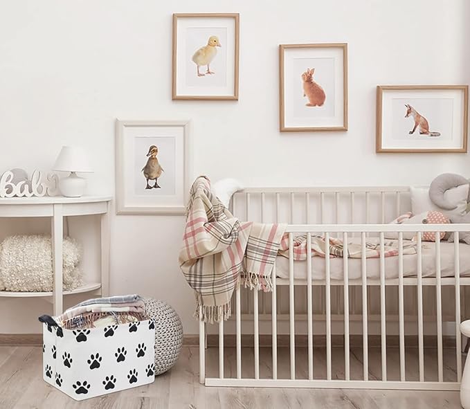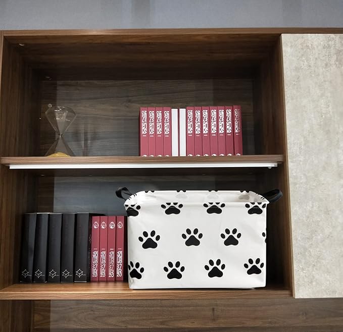 HIYAGON Dog toy Basket Dog Toy Bin Cute Toy Storage Basket Organizer Box Kids Gift Basket Empty Rectangular Room Decor for Home(Paw)