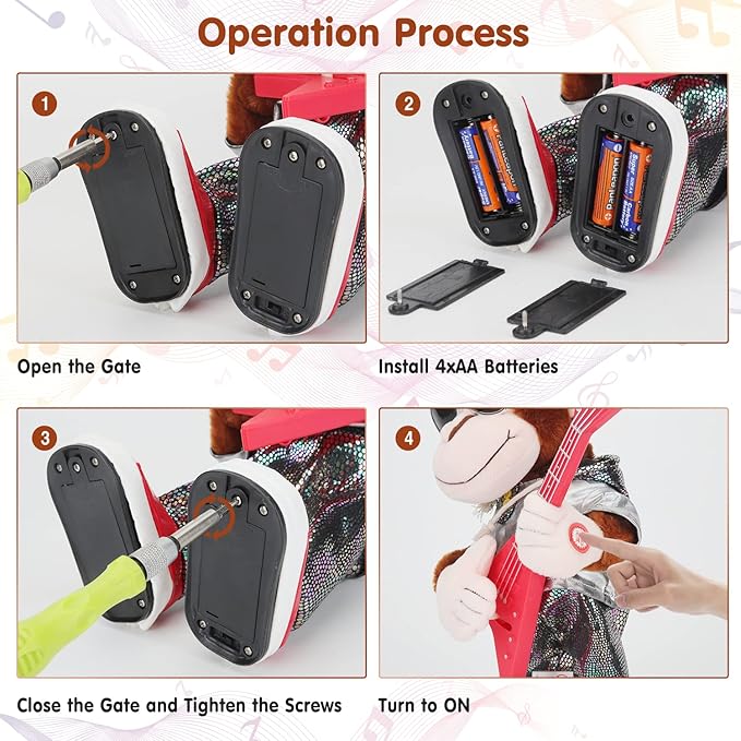 - 【Development of Musical Intelligence】This dancing guitar monkey toy is not only educational, but also suitable for the whole family to play together. The perfect guitar monkey toy for home decor and parties, creating a lively and warm atmosphere. Give your child a helpful birthday gift.