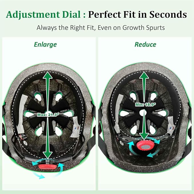 - 【Adjustable Kids Toddler Helmet Set 】- The helmet for kids has an adjustable knob in the back, can easily adjust to a perfect fit for kids, Helmet head circumference: 48-54 cm/18.9"-21.3", suitable for toddlers aged 3-5 and kids aged 5-8, one bike helmet set can be used for a few years