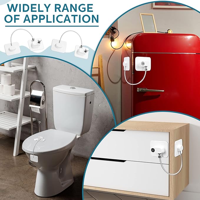 - Reliable and Sturdy Material: refrigerator door lock is made of ABS, stainless steel wire, zinc alloy, backed with adhesive backing, strong and reliable; The surface of the multi-strand steel wire is covered with a protective layer, smooth surface, not easy to fall off and does not scratch hands