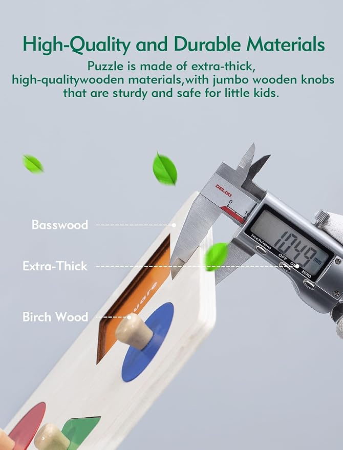 - Ideal Learning Tool for Early Education: Made from safe beech wood and non-toxic water-based paint, this wooden puzzle is perfect for children aged 1-3 and serves as an excellent learning tool for classrooms, homes, and early childhood development.