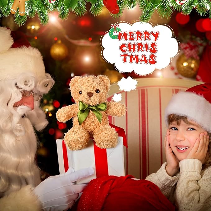 - Cute Bear Set: bears stuffed animals have a plush look with a cute green ribbon around their necks, which look nice and feel comfortable; They sit up nicely and are great for decorating your room