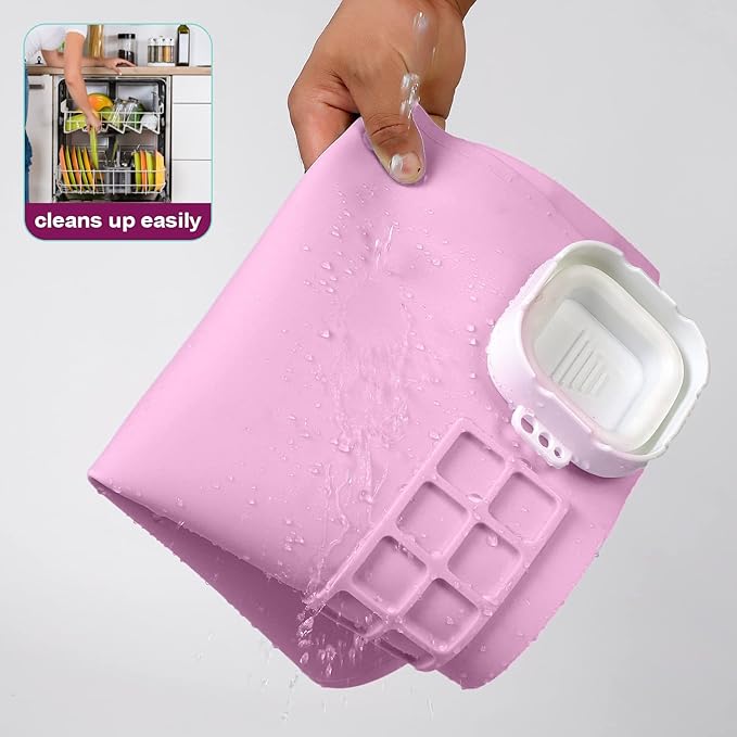 AWOKE Silicone Painting Mat for Table Protection - 20"X16" Washable Art Mat with 1 Water Cup for Kids - Craft Mat has 12 Color Dividers - 2 Paint Palettes (Pink), Toddler Activities, Girl Boy Gifts
