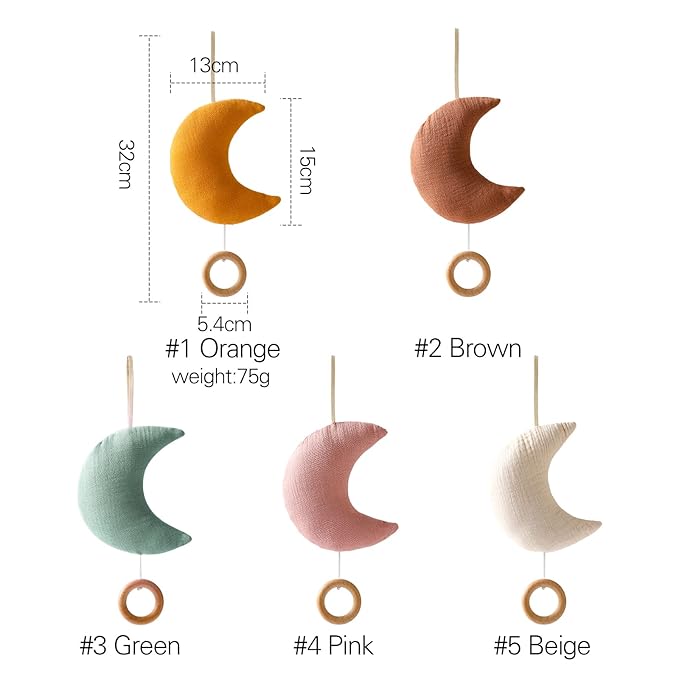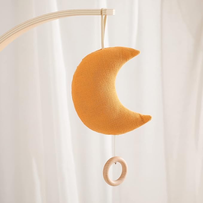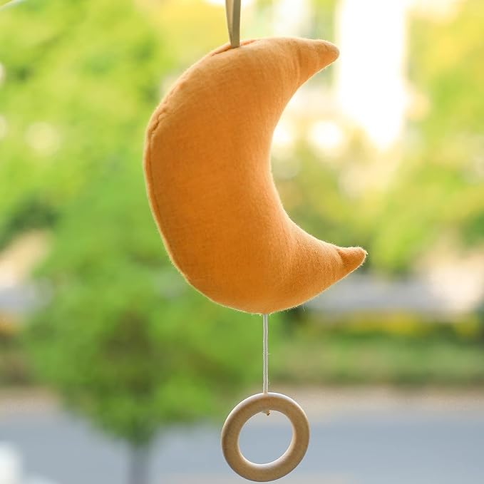 - 🌙 SENSORY TREAT - The moon musical soft travel toy is safety rated for newborns and up. Can be used as baby bed bell toy or an effective stress relief toy for baby with autism, helping them to be soothed and restored. Great for sensory development.