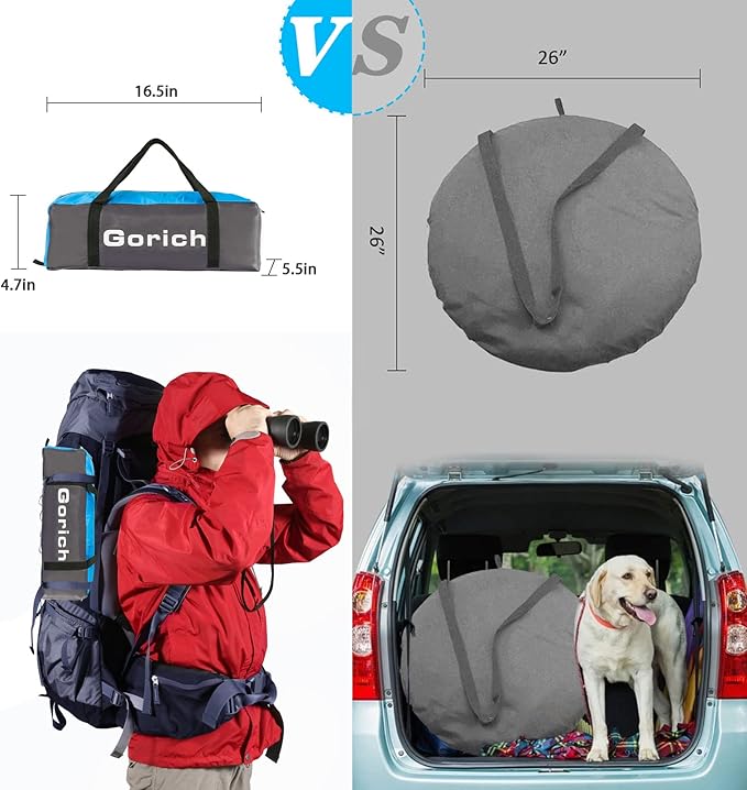 - Easy Set Up & Carry: Setting up fast within minutes. Gorich beach tent is much easier to fold than any kind of Pop-up tent. It could fold down to a travel size of 16.5"H x 5.5"L x 4.7"W, weight 4.85 lbs, with a compact carrying bag that you even won't notice on your backpacks, much easy to carry