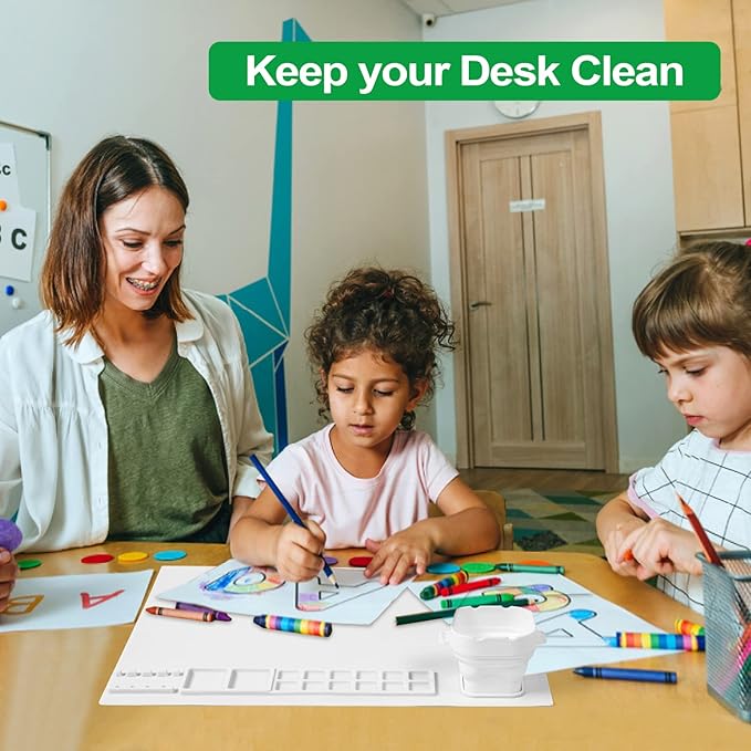 - [LARGE SILICONE MAT] - The size of the silicone artist mat with a water cup is 20×16 inches. The slightly raised edge keeps everything on the art mat.