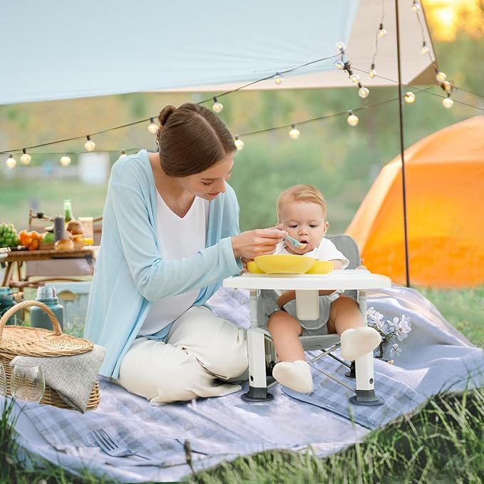- 🔒[ Superior Stability ] Refuse to tip-over and slide! Different from other booster seats, BabyBond travel booster seat has stronger support legs, a locking system, and a 3-point harness, which better protects your baby's safety. Bonus: Includes the removable anti-tip "duck feet" making the baby chair suitable for more irregular floors.