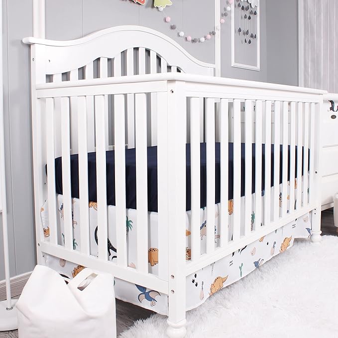 - Easy Install Crib Skirt: Measuring 28" x 52" with 14" drop, the crib skirt fits perfectly on all standard cribs beds. The 14" length is long enough to discreetly hide storage under the crib. Finished with 4 split corners to make placement around crib posts easy.
