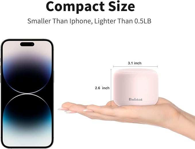 Bobtot Portable Bluetooth Speakers with Strap Easy to Carry, Wireless IPX5 Waterproof Mini Speaker with Loud Stereo Sound, 20 Hours Playtime, Rechargeable Battery, Built-in Microphone, Pink