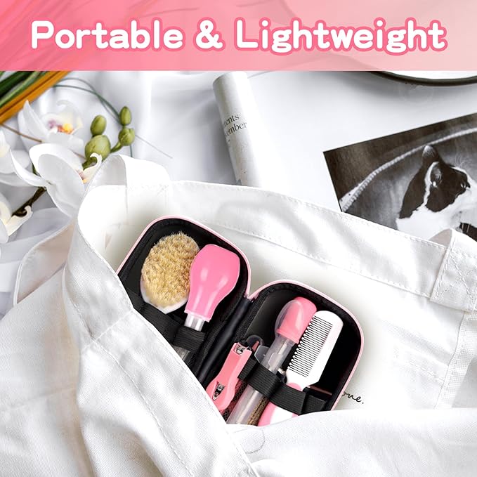 Baby Grooming Kit,Infant Safety Care Setwith Hair Brush Comb Nail Clipper Nasal Aspirator, Baby Essentials Kit for Newborn Girls Boys (14 PC-Pink Kit)