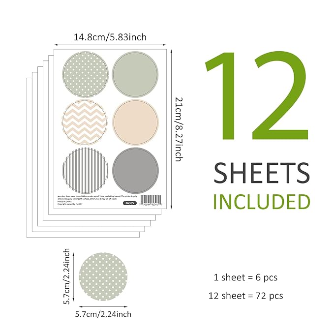 Boho Polka Dot Wall Decals 72 PCS, Removable Wall Decals Kids Room Decor Vinyl Murals DIY Cute Decorations (12 Sheets)