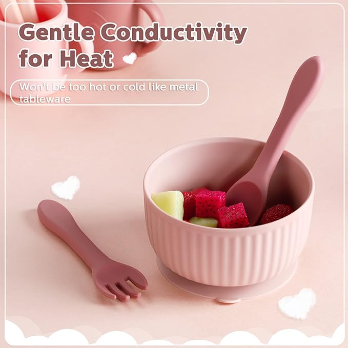 - Practical usages: baby feeding supplies can conducive to self feeding ability for baby, and the comfortable and flexible spoon and fork can also relieve baby's teething pain, babies can chew them to massage their gums