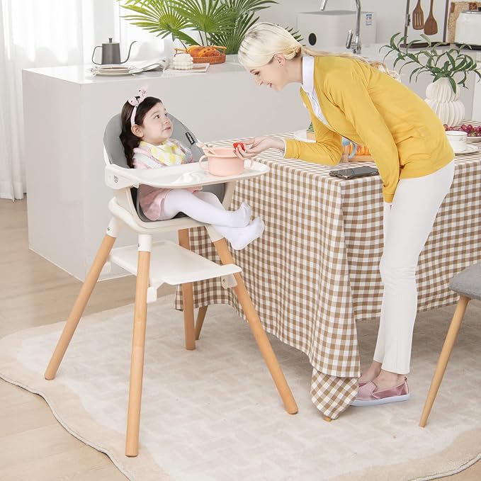 - Easy Assembly & Cleanup: Combing with detailed instruction, this baby high chair is quick to assemble. The beech wood legs are easy to assemble and disassemble with built-in screws and nuts. The seat cushion features a waterproof surface that is convenient to wipe down. And the tray is dishwasher safe for daily cleanup after use.