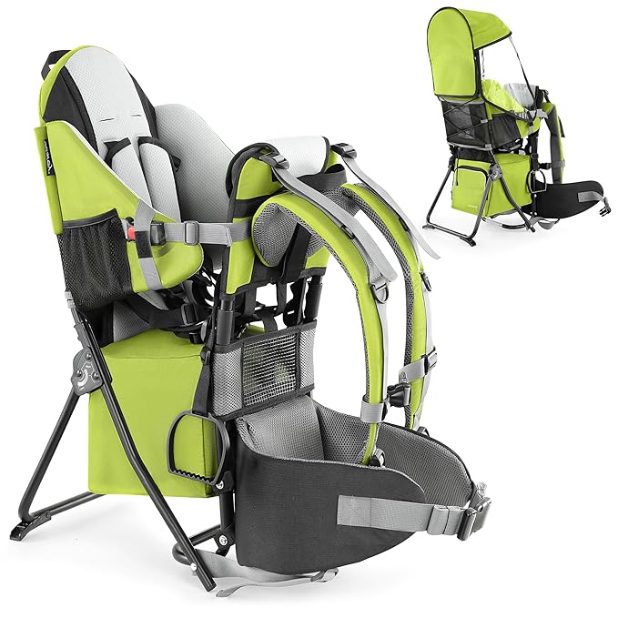 besrey Baby Backpack Carrier, Toddler Hiking Backpack with Safety 3-Height Seat, Adjustable Straps&Waist Belt, Foldable Frame Lightweight Large Capacity Child Carrier for Hiking (Green)