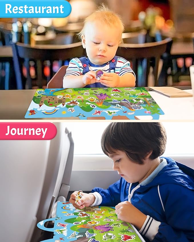 Benresive Reusable Sticker Book for Toddlers 2-4 Years, Fun Travel Stickers for Kids, Waterproof Sticker Books for Toddlers 1-3, Crafts Activities for Todddlers 1-3 2-4 3-5 - Dinosaurs