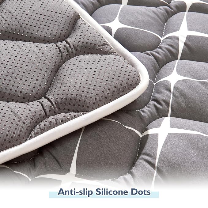- 【Non-slip, thick and comfort】 The back side of the 50x50 play mat for made of anti-slip material, and the bottom backing is silicone dots. It is thicker than other play mat. It prevents babies from causing pain when they fall or bump.