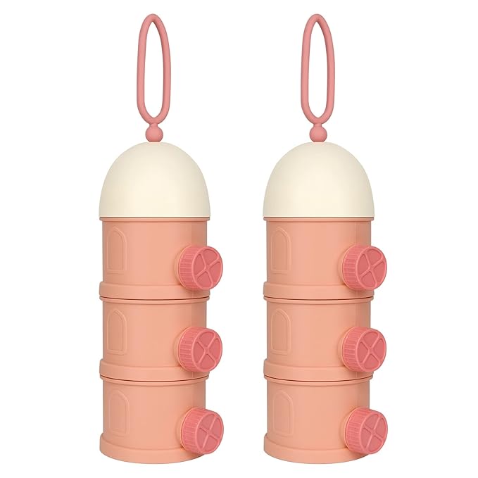 Accmor Formula Dispenser On The Go, 3 Layers Stackable Formula Container to Go, Non-Spill Portable Milk Powder Baby & Kids Snack Container, Pink