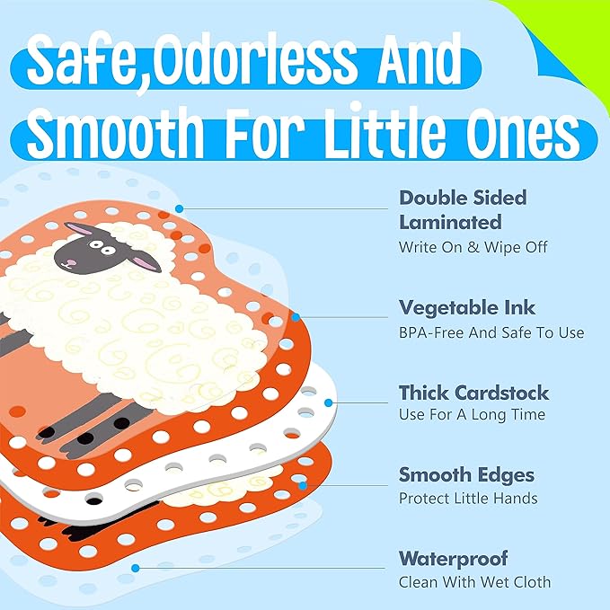 - Multiple Skills Development: The lacing card is designed to develop lacing and sewing skills, children can get diverse skills while they play the cards. It is an ideal educational toy to develop kids' hand-eye coordination, sequencing, dexterity, imagination and motor skills. And learn to tie shoelaces in advance.