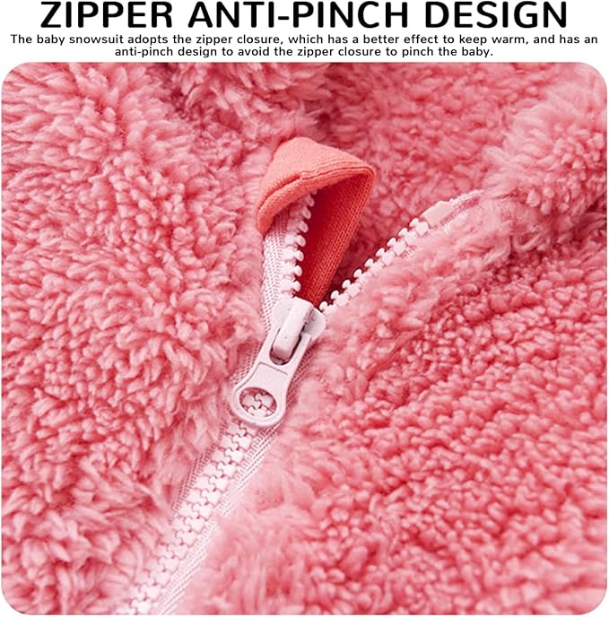 - ❤♥Design: Baby fleece snowsuit jacket warm one-piece jacket, full-cover zipper design to protect the baby from harm, one pull to the end, it is convenient for the baby to change diapers, the flip-up gloves can keep the baby warm and energetic at the same time, the bear ear one-piece cap makes the baby Avoid cold winds outdoors while increasing your baby's charm.