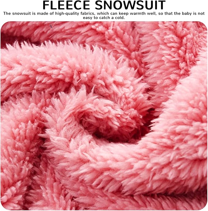 - ❤♥Material: This baby snow suit flannel jacket clothes made of high quality polyester fiber, double lining, fine polyester fiber cares for baby's delicate skin. The newborn winter fleece outfit hoodie whole body jumpsuit design, keeps the baby's head and ears inside and warm when outing. The toddler boys & girls snow suit accompanies the baby through the cold winter.