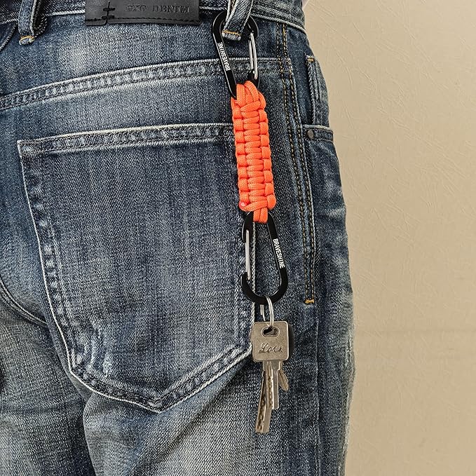 - Compact Collection: Survival keychain ring hook is convenient and compact for you to hook it to the bags, belts or put it into your pocket, car, survival tool box. You can easily take the premier parachute cord carabiner keychain to anywhere at anytime.