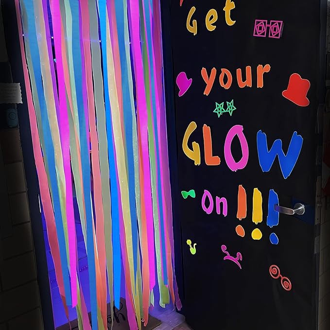 - Easy to use and decorate: The Glow Party streamers with bright colors are suitable for you to make DIY decorations. They can decorate your ceiling, door, window, book shelf, porch, garden, yards and other places. They are bright under daylight and glow only under Specific UV light, which Will Bring You an Amazing and Fun Neon Party.