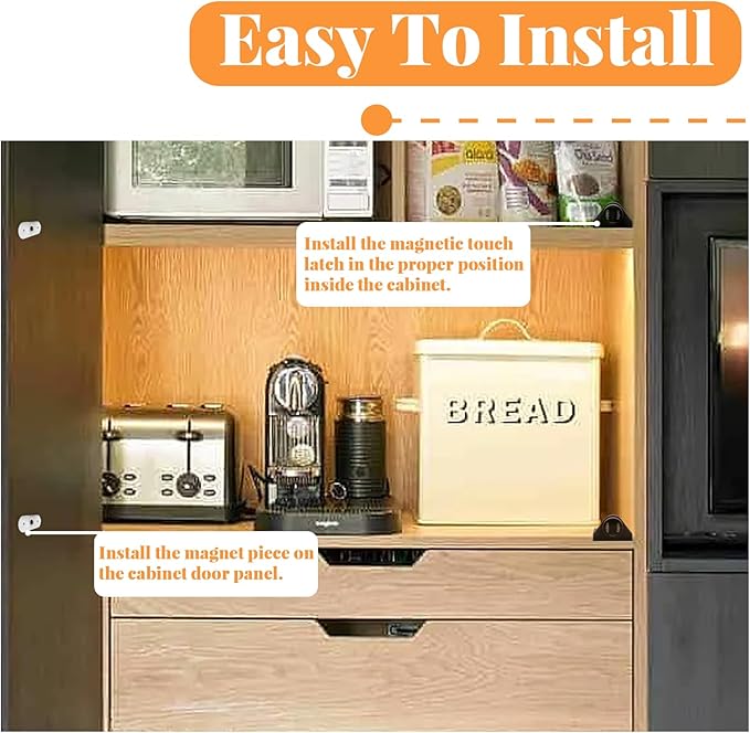 - Durable Material: The shell of the magnetic touch latch is made of ABS material, strong and stable, wear-resistant and durable. High quality magnets and iron sheets provide strong suction and prevent them from falling off easily.
