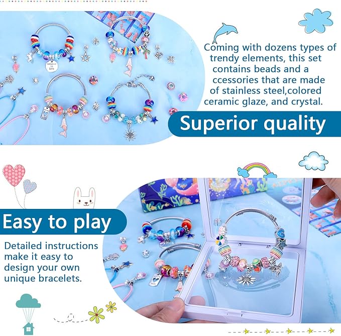 AIPRIDY Charm Bracelet Making Kit,Unicorn Mermaid Crafts Gifts Set Can Inspires Imagination and Creativity,Jewelry Making Kit Perfect Gifts for Girls 5-12 Years Old(72 Pieces Mermaid Aqua)