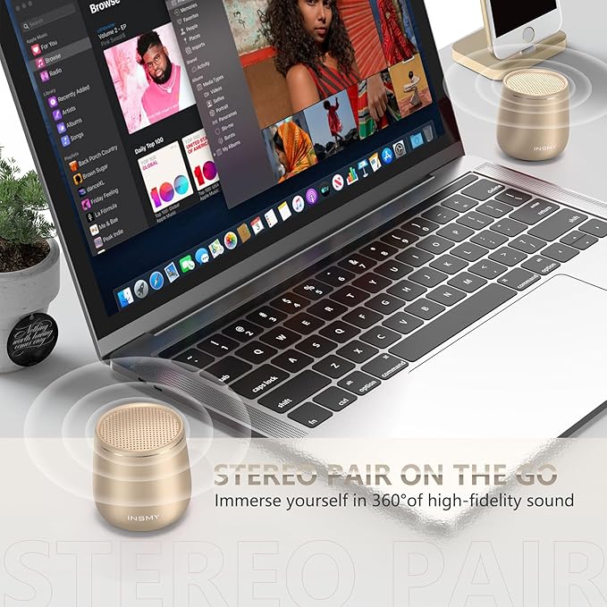 INSMY Small Bluetooth Speaker, Waterproof Mini Portable Wireless Speaker, Punchy Bass Rich Audio Stereo Pairing, Handheld Pocket Size,Built in Mic for Hiking Biking Gift Laptop Tablet (Gold)