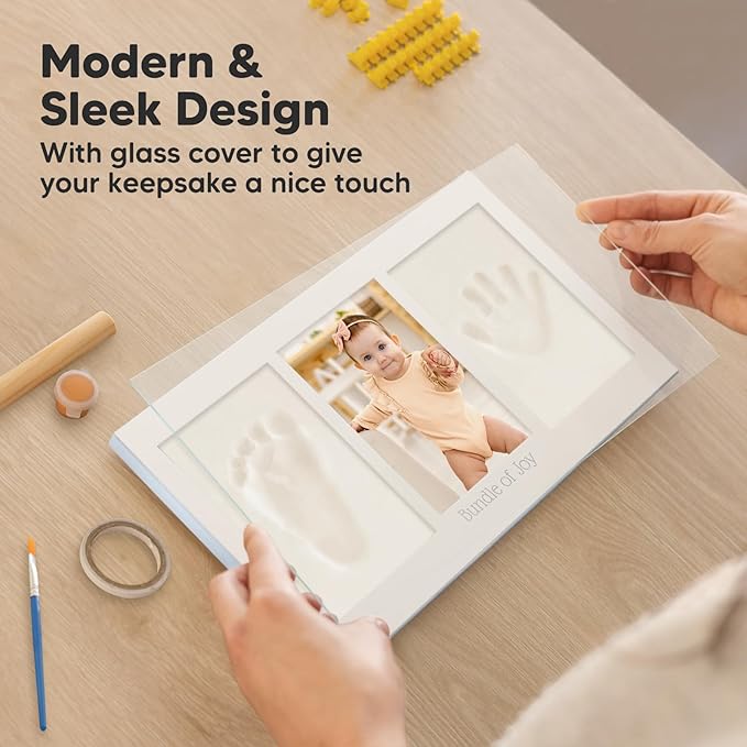 - 100% Safe Food-Grade Clay - Our baby picture frame features 100% baby-safe air-dry clay, perfect for preserving your baby prints. Our premium material ensures durability, the baby hand and footprint maker will look flawless for years to come.