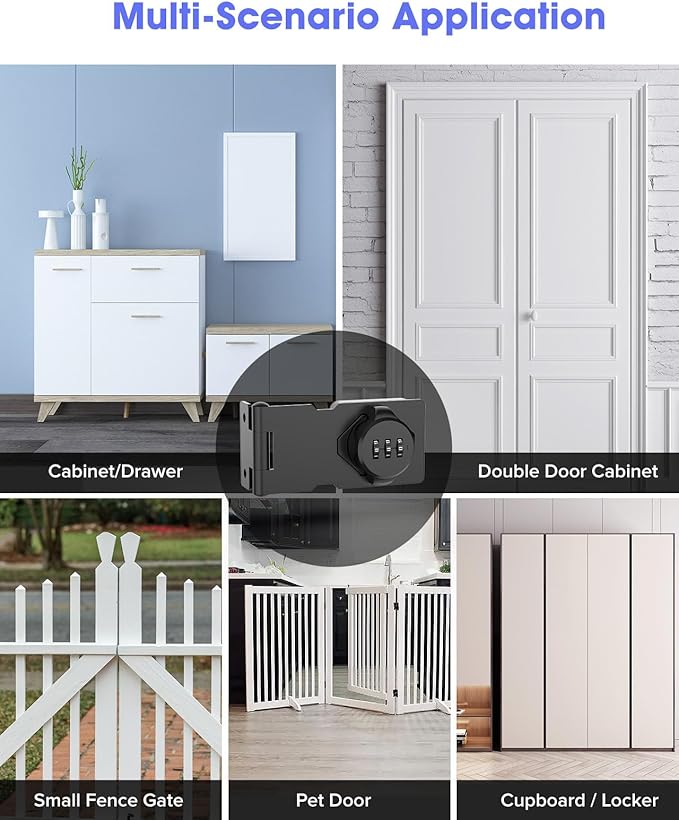 - Wide Application: Cabinet door combination latch lock can be used with small doors, shed doors, barn doors, garden, pet doors, cabinets, drawers, mailboxes, safes, office file cabinet locks, etc