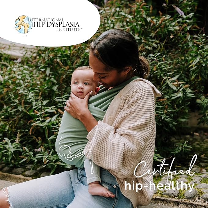 - Certified “Hip-Healthy” by the International Hip Dysplasia Institute: This infant carrier wrap helps keep baby in a natural, ergonomic position while evenly distributing weight—relieving pressure from your back and shoulders.