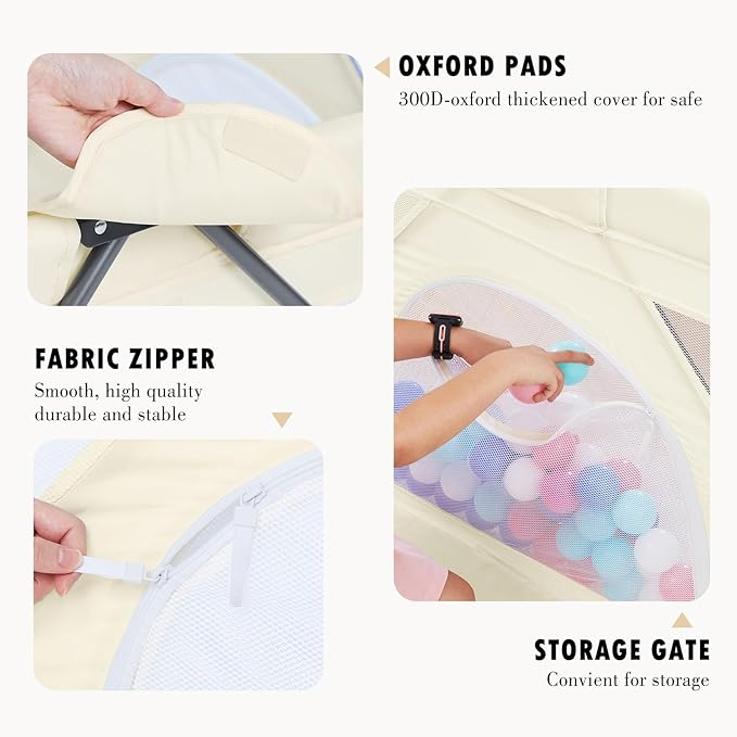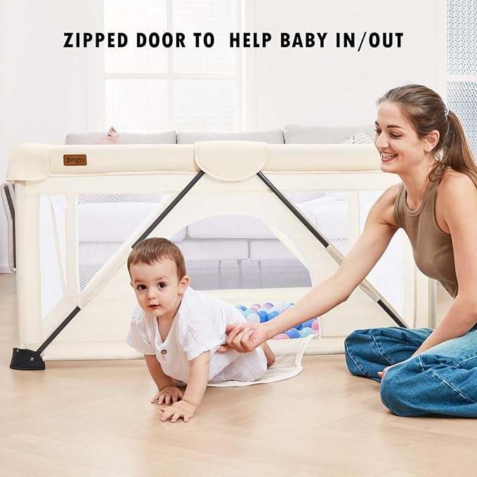 - ❤360° Breathable Mesh: The mesh makes it possible to keep track of your baby's movements. Playpen with zippered gate meets baby's need to enter and exit independently. It comes in soft neutrals and has a sleek design meant to fit in with your decor for years to come.