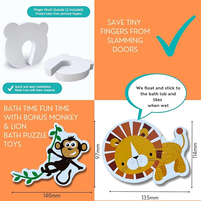 - 2 x FINGER PINCH GUARDS: Oh, the dreaded pinched fingers! These are a simple solution to a common problem. Keep those tiny hands safe from slammed doors!