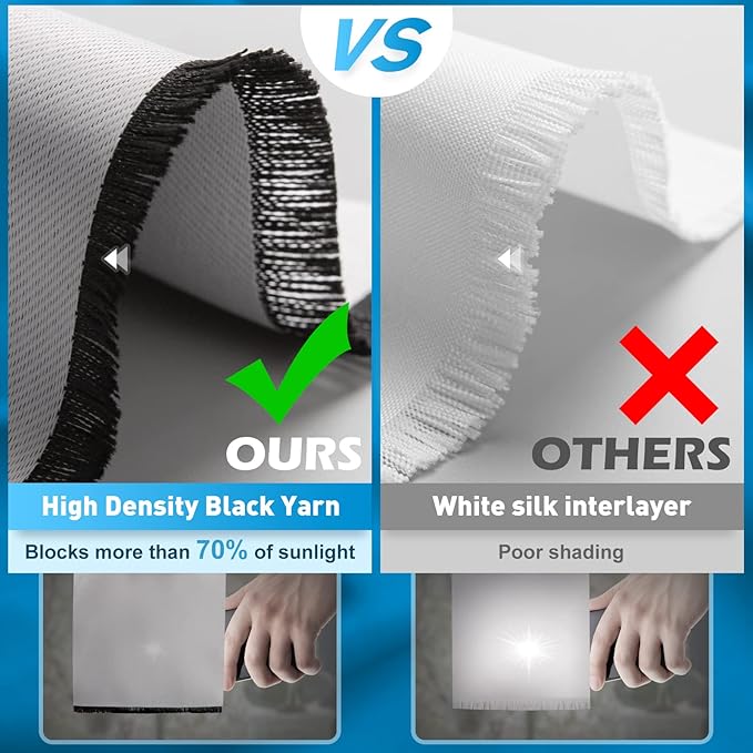 - Multiple Function: 70% Blackout, 100% Privacy Protection. Our curtains have great room decoration functions, add fun to the room, suitable for home, office, bedroom, living room, bathroom, dining room, dorm, classroom, nursery, outdoor patio, gaming room, school, library, kitchen, closet, door.