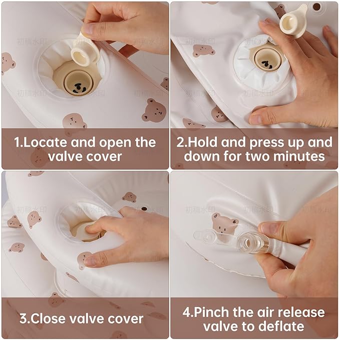 - 【SAFE MATERIALS FOR BABY】: Crafted from premium, non-toxic PVC, our baby seat is resilient, leak-resistant, odorless, and skin-friendly. It poses no harm to your baby. The seat bottom features breathable vents, preventing discomfort from prolonged sitting, ensuring your child remains cool and comfortable.