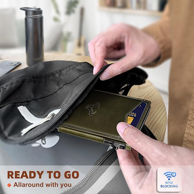 BULLIANT Men Wallet,Money Clip Wallet Slim For Gift Men 9Cards-Metal Credit Card Case in Magnetic Leather Flip