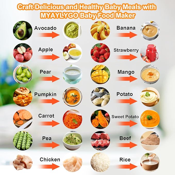 - 【Protecting Baby's Safety】Material safety is an important factor when choosing a baby food maker. Our baby food processors passed FDA certification. The baby food maker is made from BPA-free materials, and the baby blender set is made of all baby-grade health certification materials including food-grade silicone, 316 high-quality stainless steel, and food-grade high borosilicate glass, to the baby more assured, baby growth by us guard.