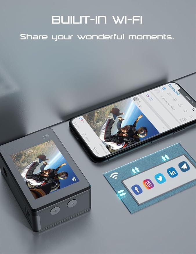 Action Cameras 4K 40M Waterproof Underwater Camera for Snorkeling, EIS Camcorder WiFi 170 Wide Angle Dual Screen Vlog Camera Sports Body Cam Mini(Charger, Remote Control and Helmet Accessories)