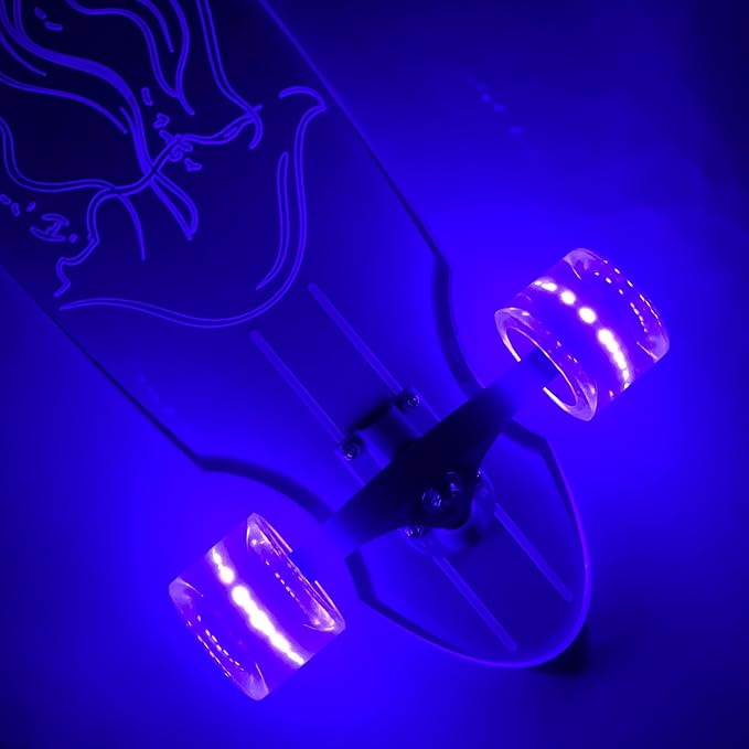 - Fully Assembled Setup: This complete skateboard includes pre-mounted trucks, friction-powered LED wheels, and a skate T-tool for tuning. It's suitable for all skill levels-from first rides to more advanced motion. The versatile look complements those who enjoy bold rides with a longboard skateboard adult vibe. It aligns with preferences for a clear-bodied build, such as a clear light-up skateboard.