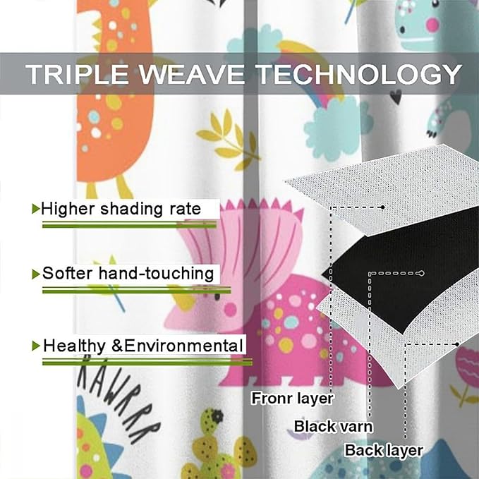 Cartoon Dinosaur Curtains for Kids Boys Girls Home Decor Childish Cute Dino Animals Print Pattern Rod Pocket Blackout Window Drapes for Nursery Baby Bedroom Playroom W31.5xL72in 2 Panels
