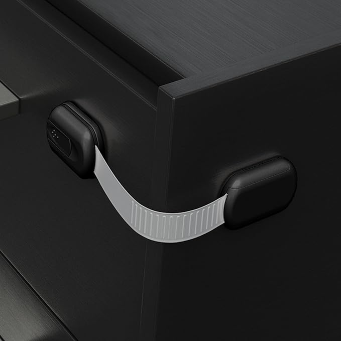 • What You Get: 2 multi-purpose cabinet locks that has a high grade 3M adhesive. Flexible strap means you can bend around items from toilet seats to fridges