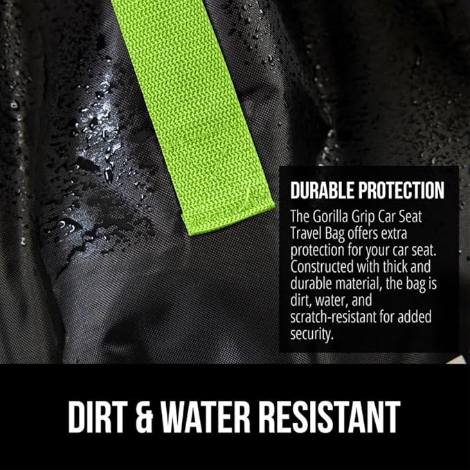 - DURABLE PROTECTION FOR YOUR CAR SEAT: a must for traveling, the Gorilla Grip Car Seat Travel Bag is designed to help protect your car seat while you travel; bag is water, tear and dirt resistant; features drawstring closure that tightly closes around the car seat, helping to protect from dirt, grime and moisture; bag is made of lightweight, yet durable material that can be machine washed