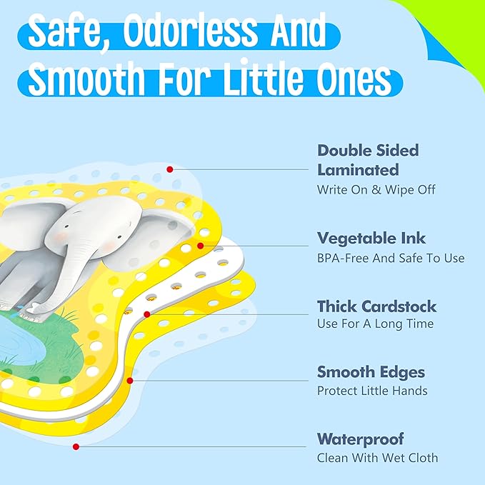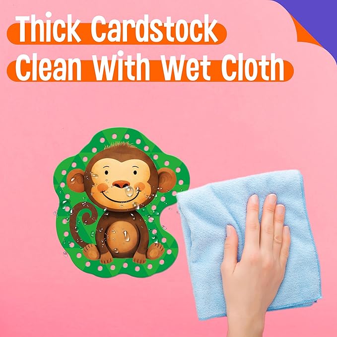 - Cute Patterns & Smart Designs: The pattern covers diverse wild animals, like hippo, tiger, zebra, bear, giraffe, lion, monkey, elephant and crocodile. The illustrations on cards are big, vivid and vibrant. The holes are clearly cut and easy for preschoolers to work with. The strings are easy for children to use and fit into the holes easily.