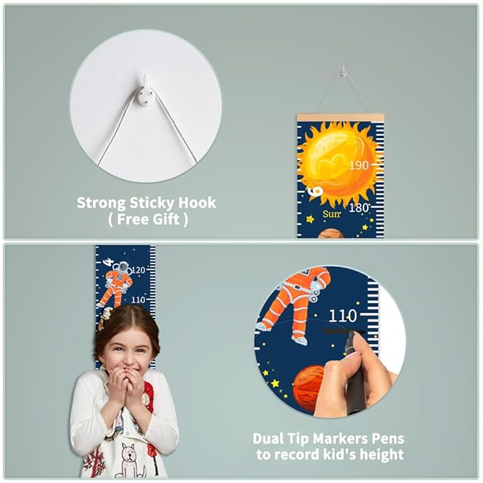 - CONVENIENT TO USE - This kids growth chart easy to install and remove. You could hang it on the wall or roll it up to put in box for saving. Suitable for decorating children's rooms, such as kids nursery, bathroom, play room, baby room, kindergarten, classroom.