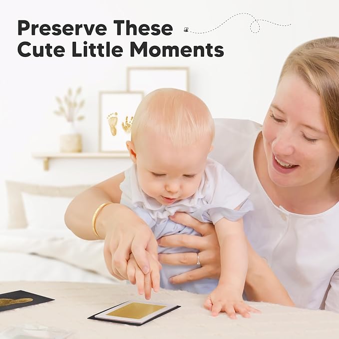 2-Pack Inkless Baby Hand and Footprint Kit - Mess Free Ink Pad for Newborn Keepsake, Dog Nose & Paw Print Kit, Clean Touch Ink Pad for Baby Hand & Footprints, Ideal New Mom Gifts (Gold)
